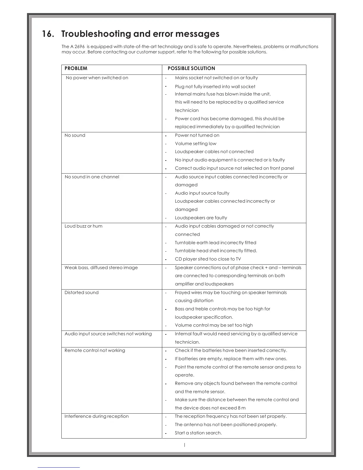 16. Troubleshooting and error messages