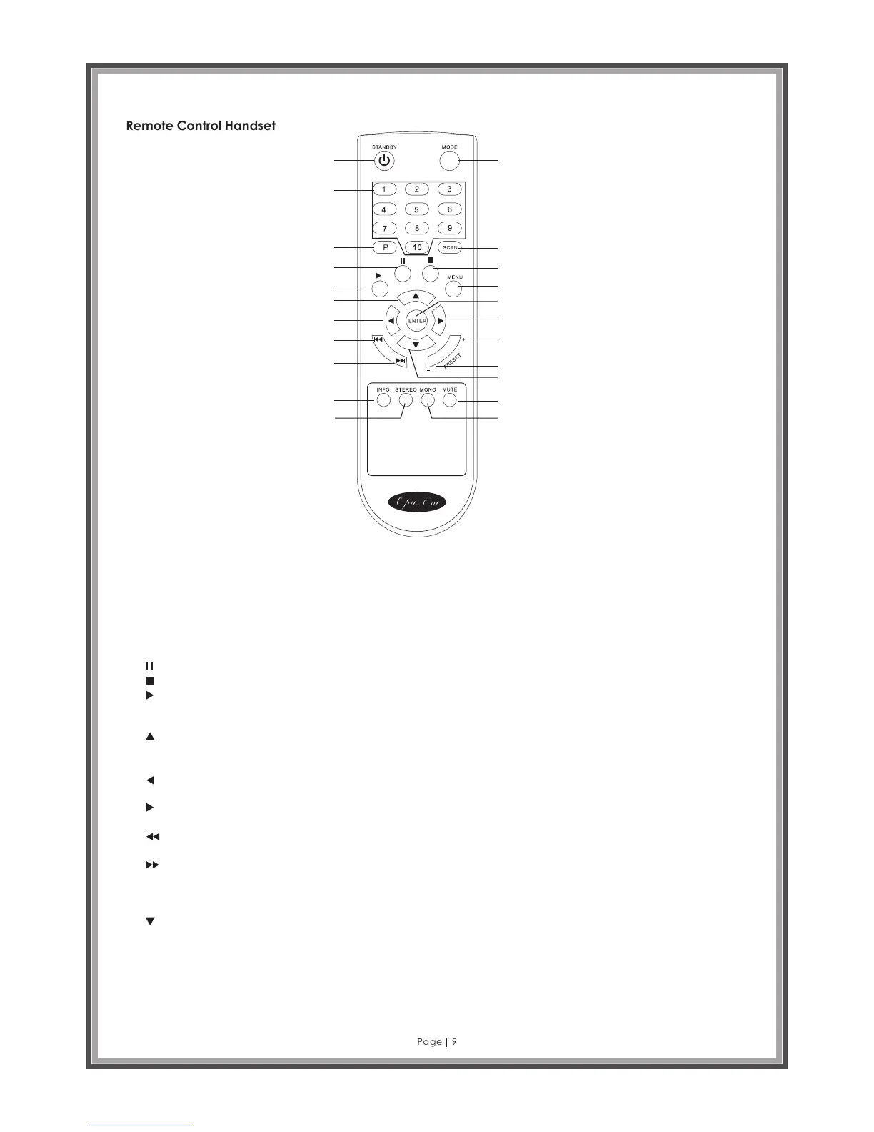 6. : PAUSE – Press to pause playback of track in Media Player mode. Also acts as a menu control.