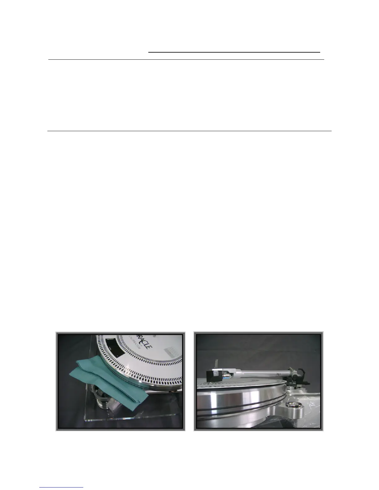 • Aim the black alignment line (Located over the “O” of Oracle) with the pivot center of the tone arm.