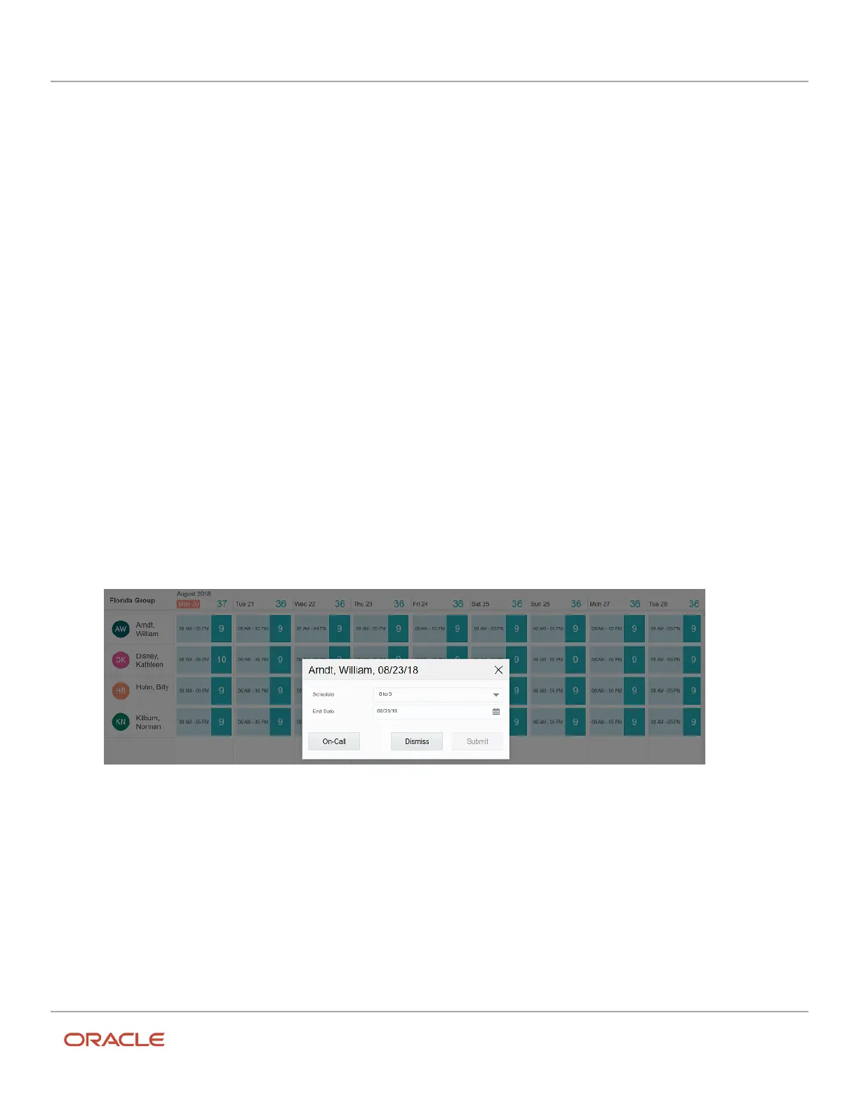 The calendar displays and shows the shift for all the resources in your group or bucket.