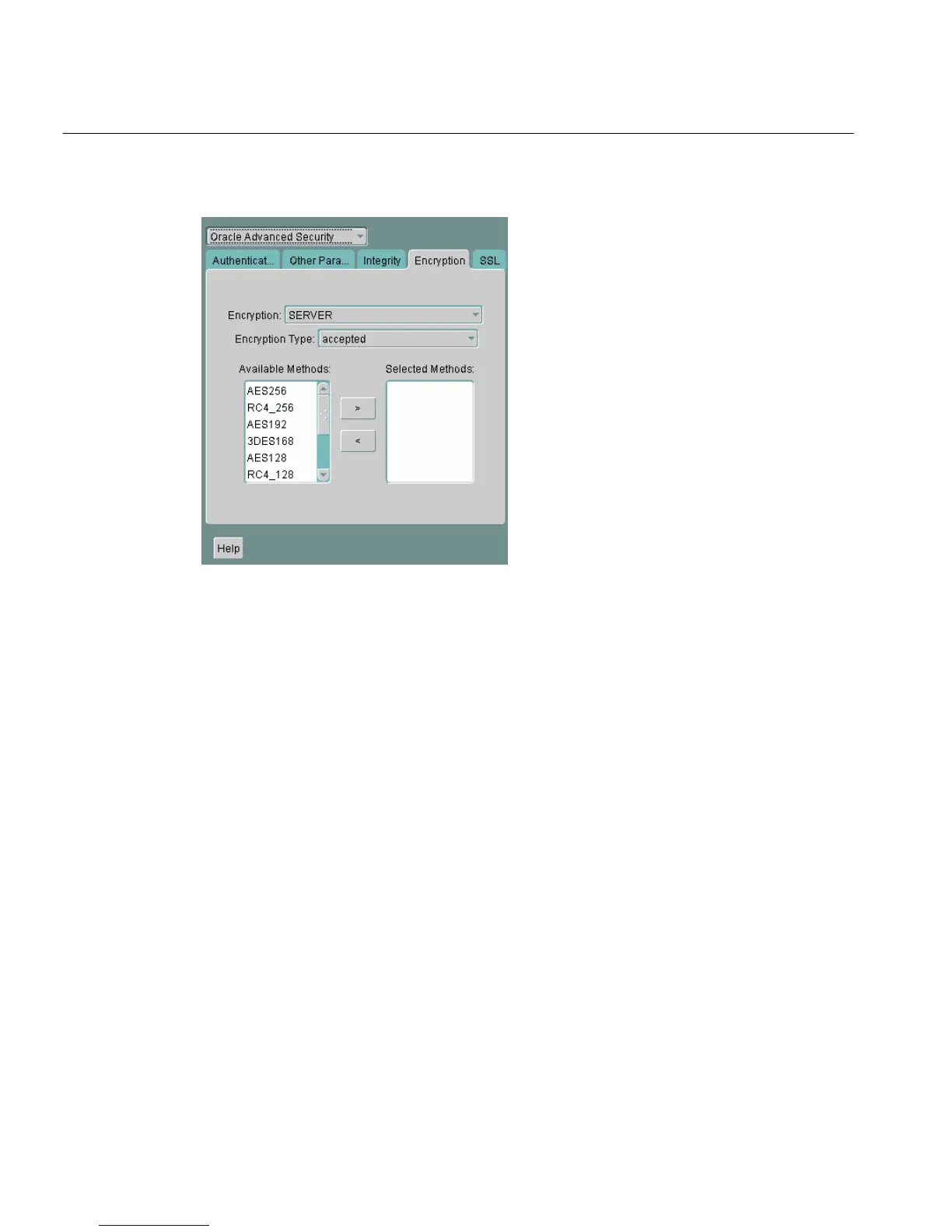 6. Select an encryption algorithm in the Available Methods list. Move it to the