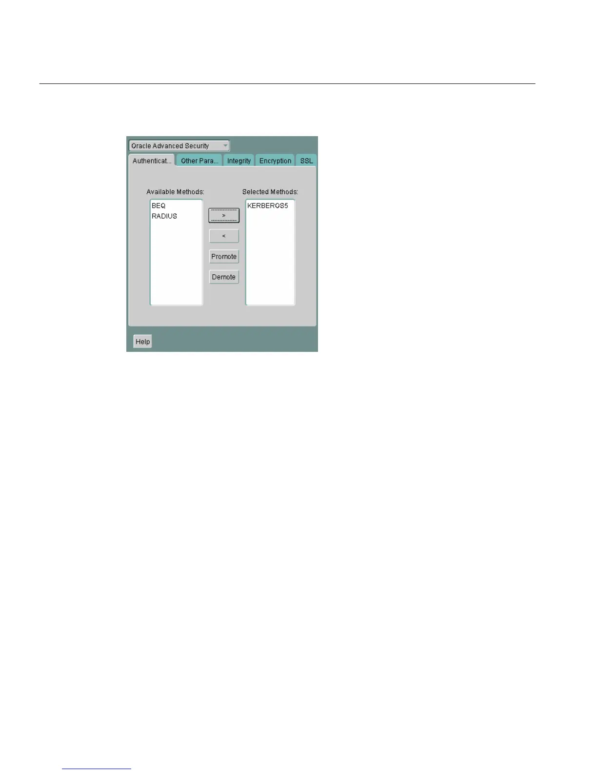 4. Move KERBEROS5 to the Selected Methods list by clicking the right arrow (>).