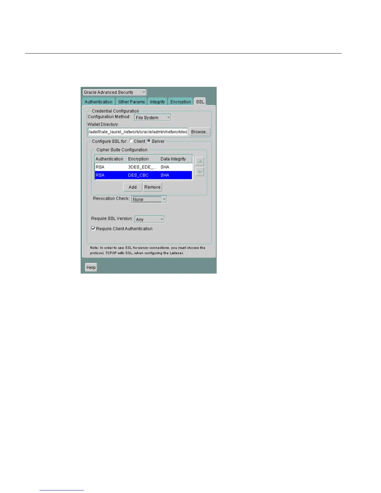 Figure 7–3 Oracle Advanced Security SSL Window (Server)