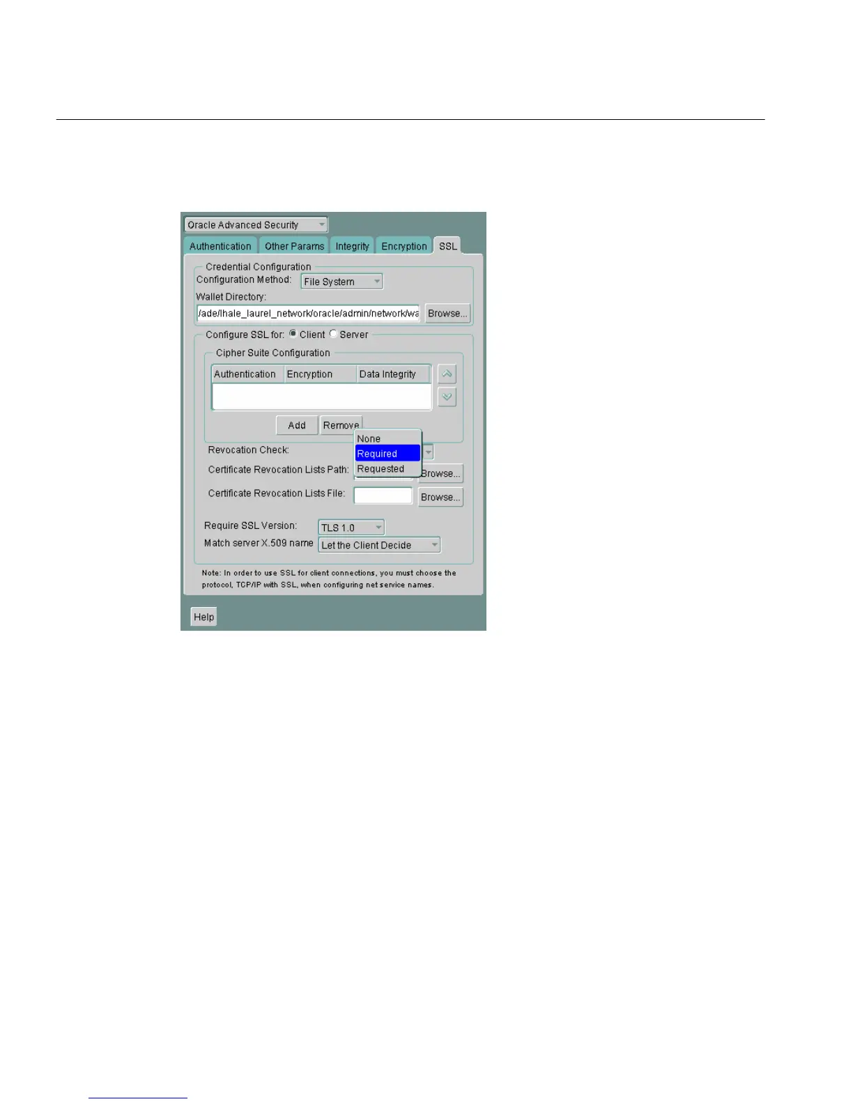 Figure 7–7 Oracle Advanced Security SSL Window with Certificate Revocation