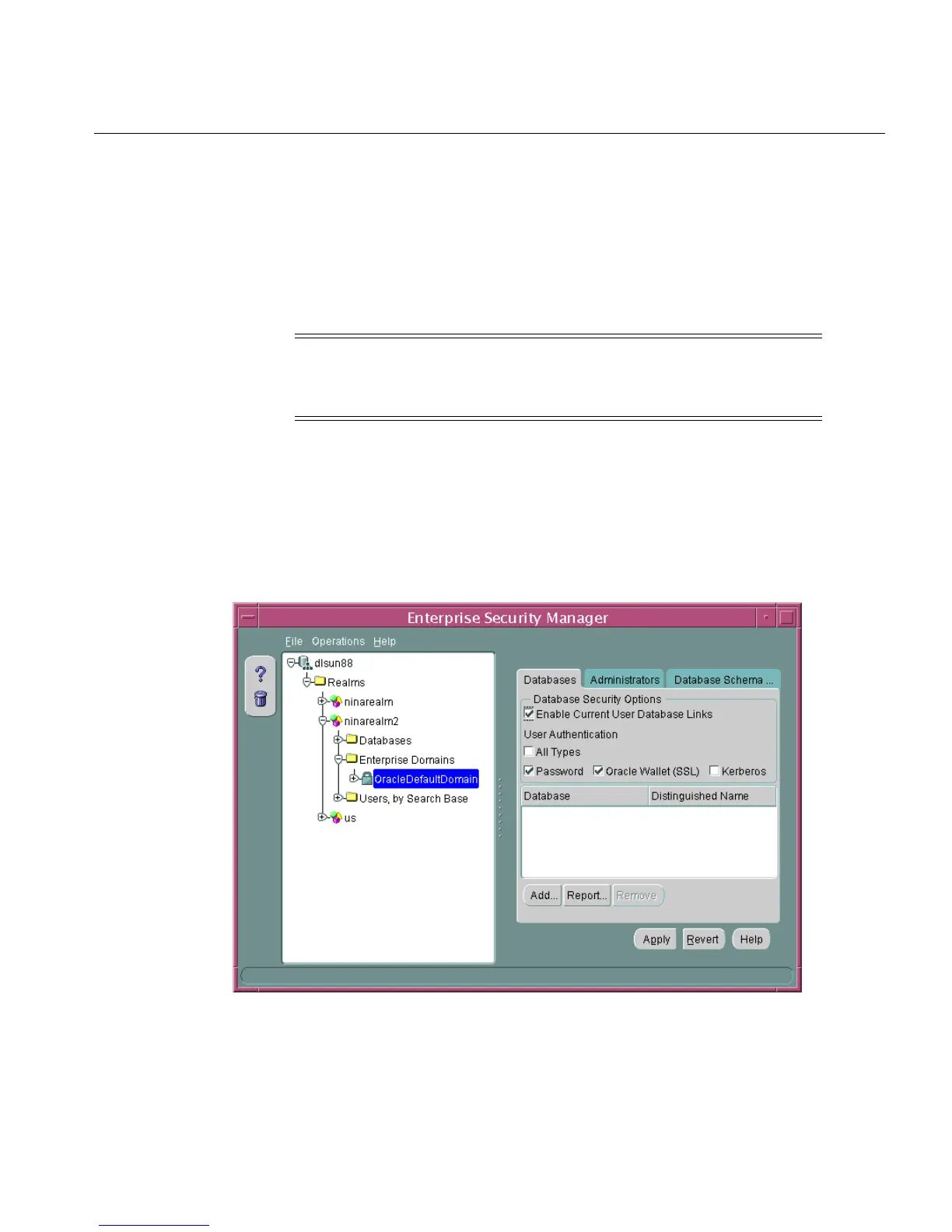 Figure 13–6 Enterprise Security Manager: Databases Tab (Database Membership)