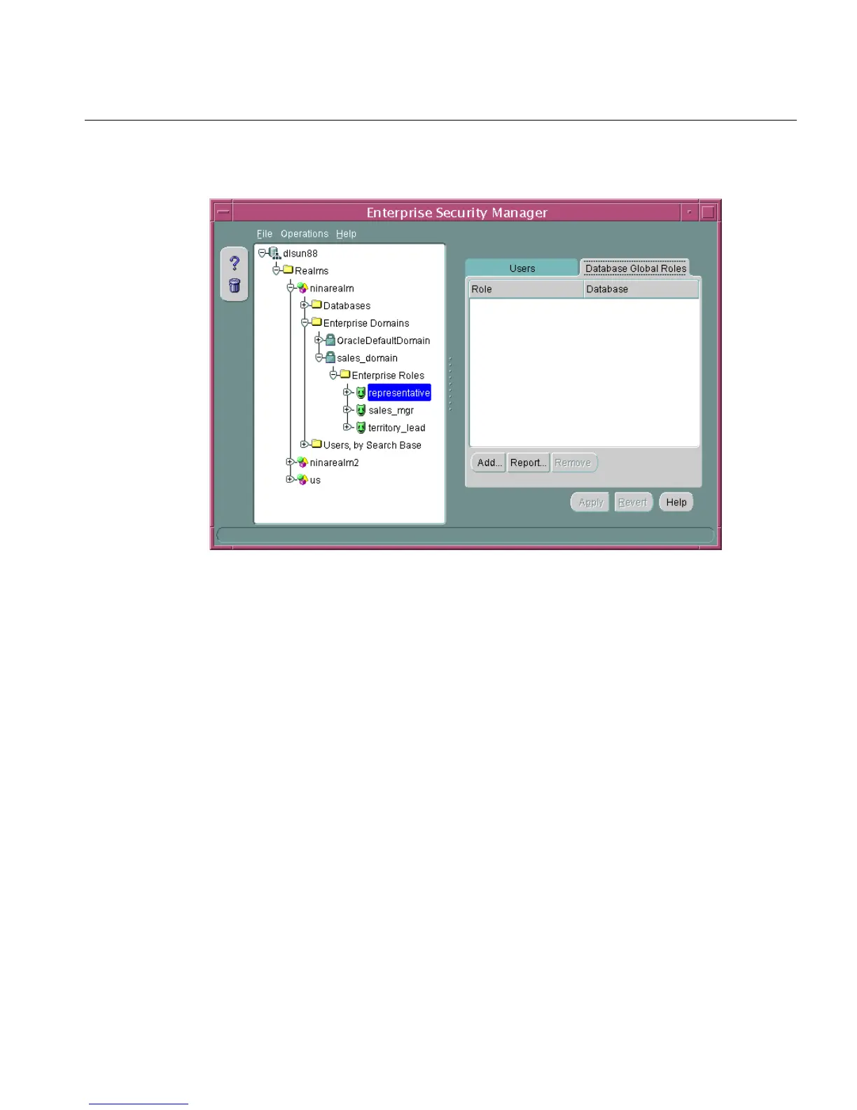 Figure 13–12 Enterprise Security Manager: Database Global Roles Tab