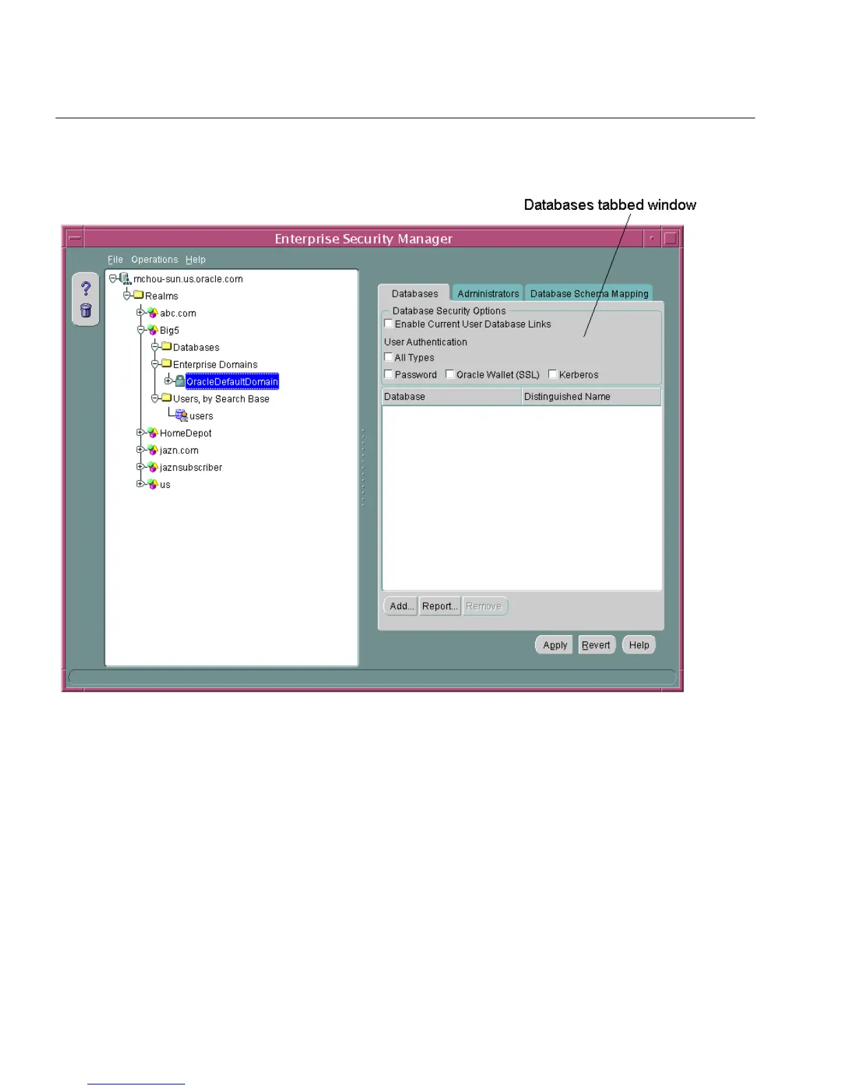 Figure 2–6 Enterprise Security Manager Databases Tabbed Window