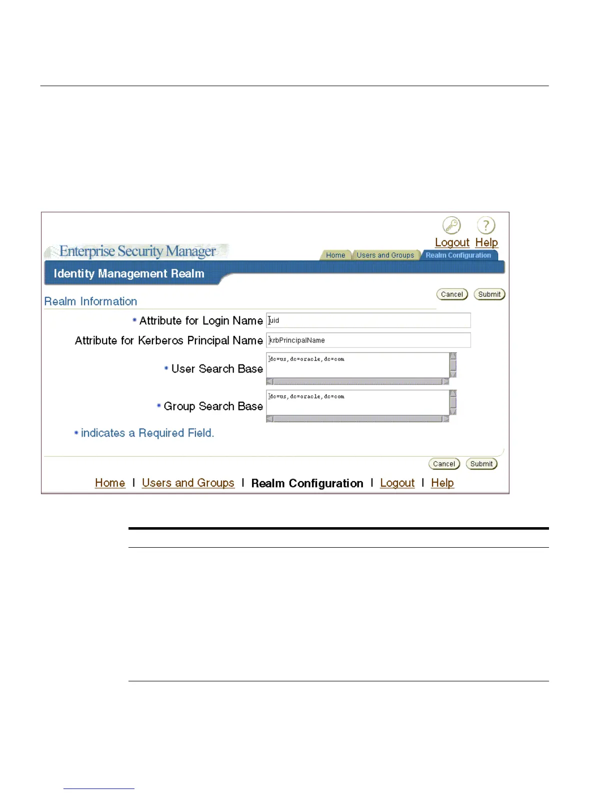 Table 2–13 Realm Configuration Tabbed Window Fields