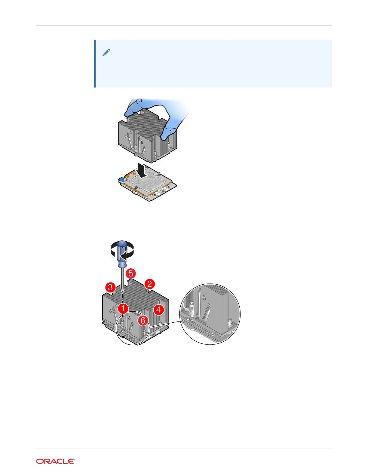 b. Tighten captive screws 1, 2, 3, 4, 5 and 6 in the order shown in the illustration from