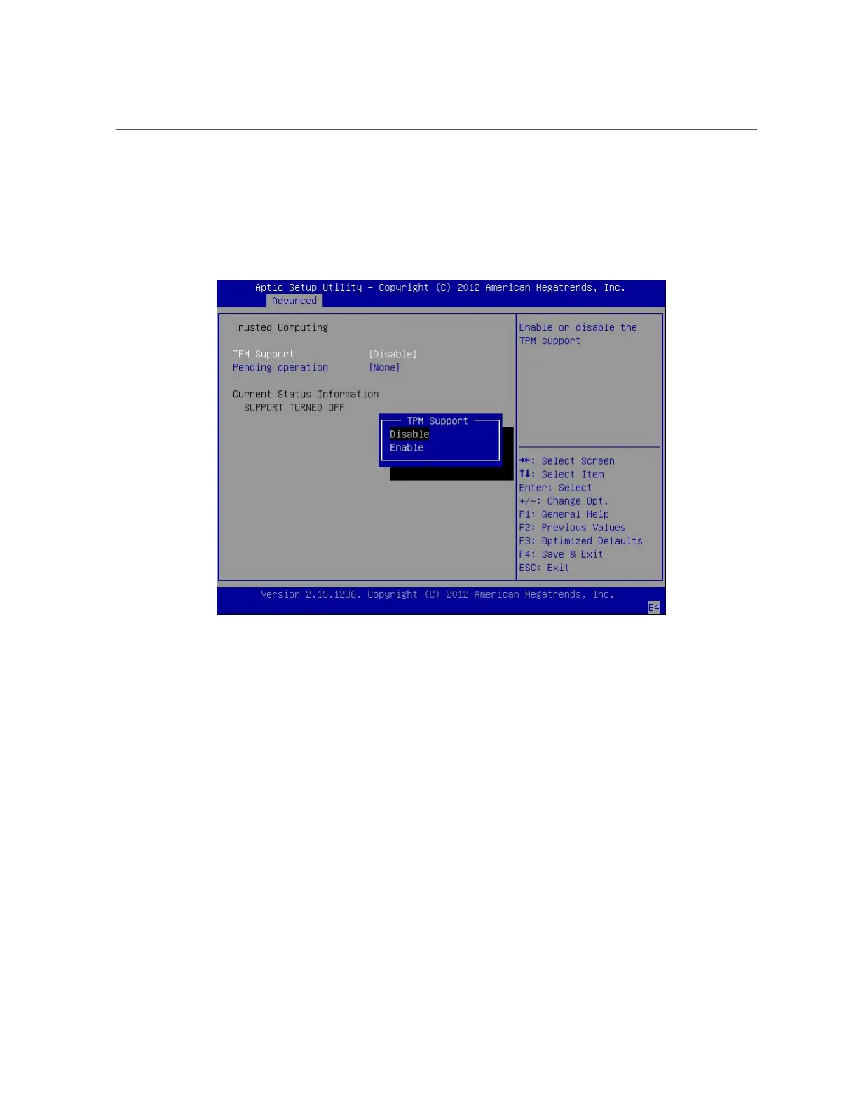 In the dialog box, set TPM Support to Enable, and then press Enter.