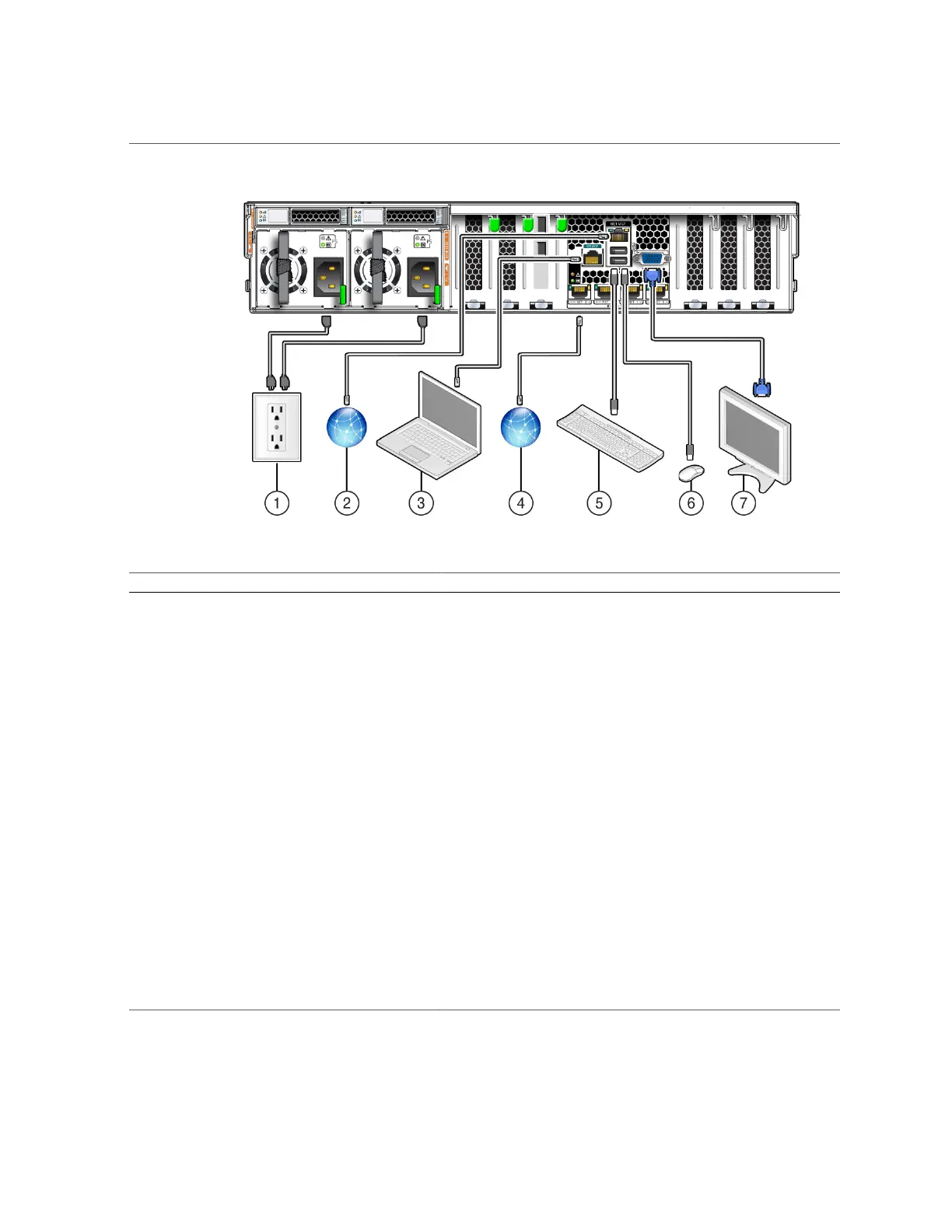 The server has two power supply connectors, one for each power supply.