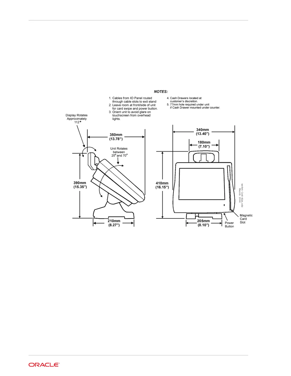 MICROS Workstation 4/4 LX Dimensions on Stand with LCD Customer Display