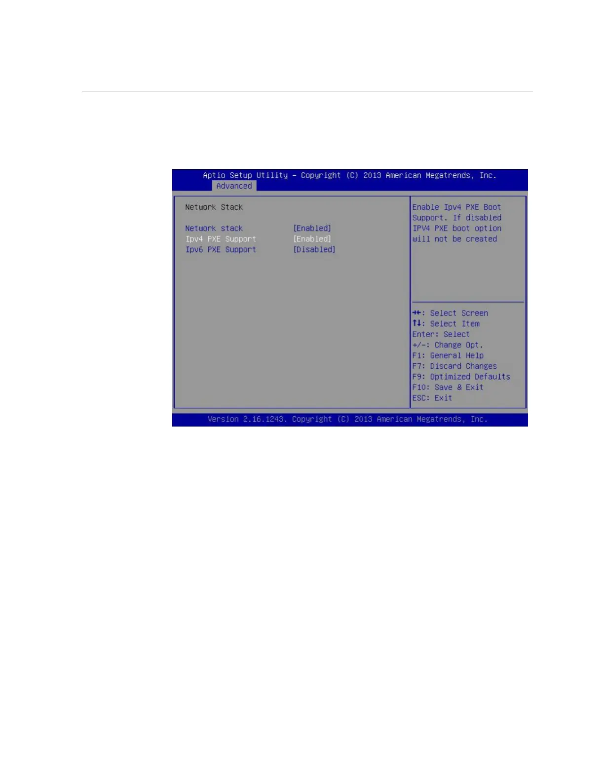 The BIOS Setup Utility Network Stack screen appears.