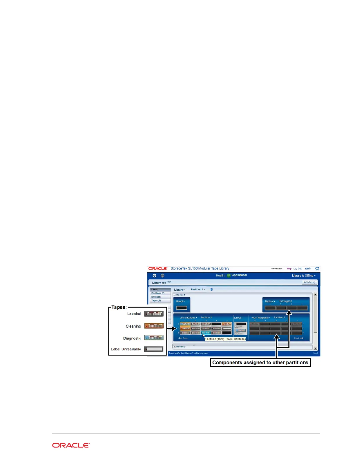 You can view the whole library or a single partition at a time. When viewing one