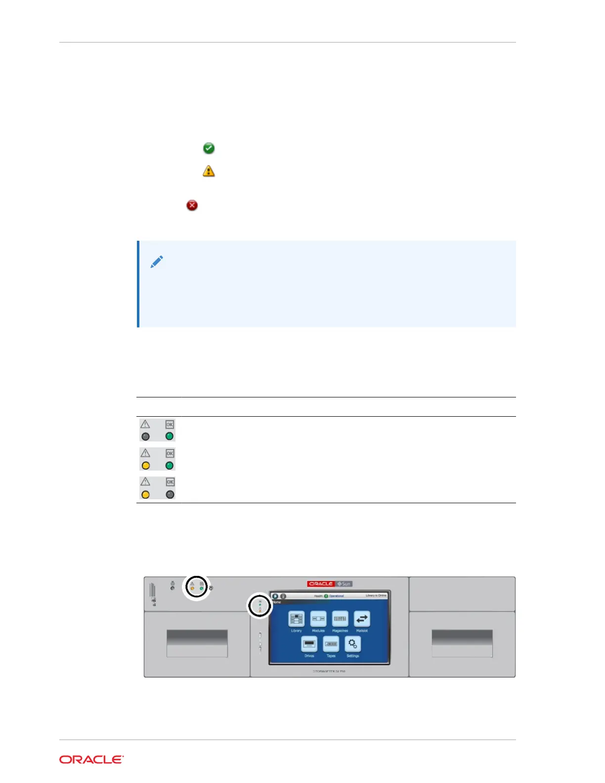 • Failed — a device has failed and the library cannot function (such as a failed