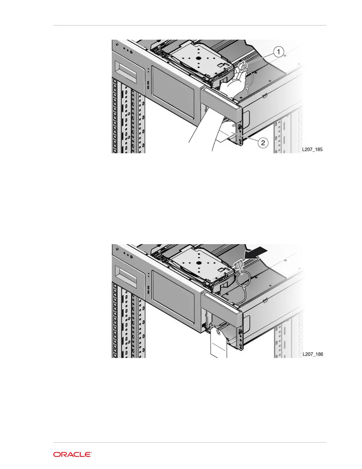 5. Guide the instruction tag out of the cartridge magazine slot. Route the string and