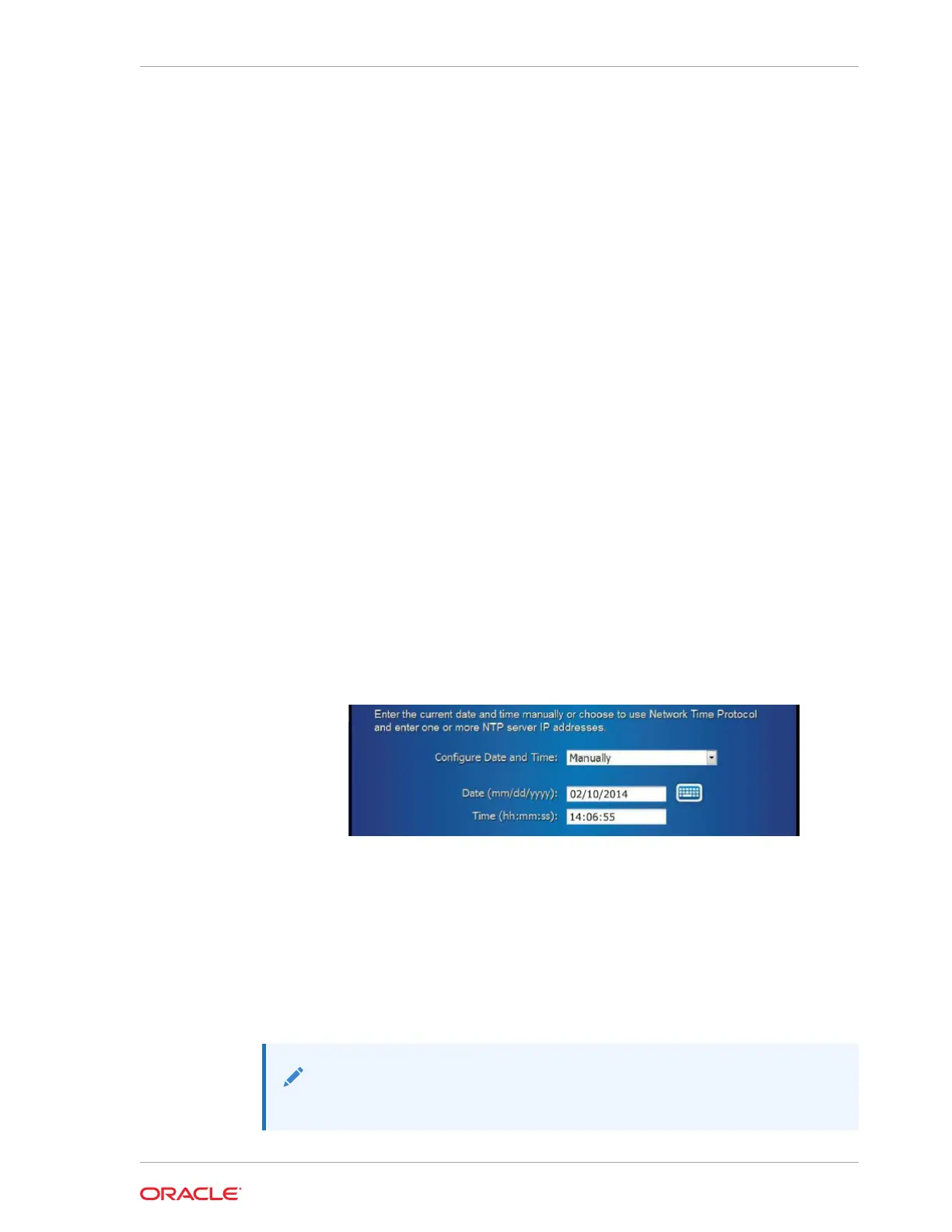 • If you select Using Network Time Protocol, you must provide the IP address
