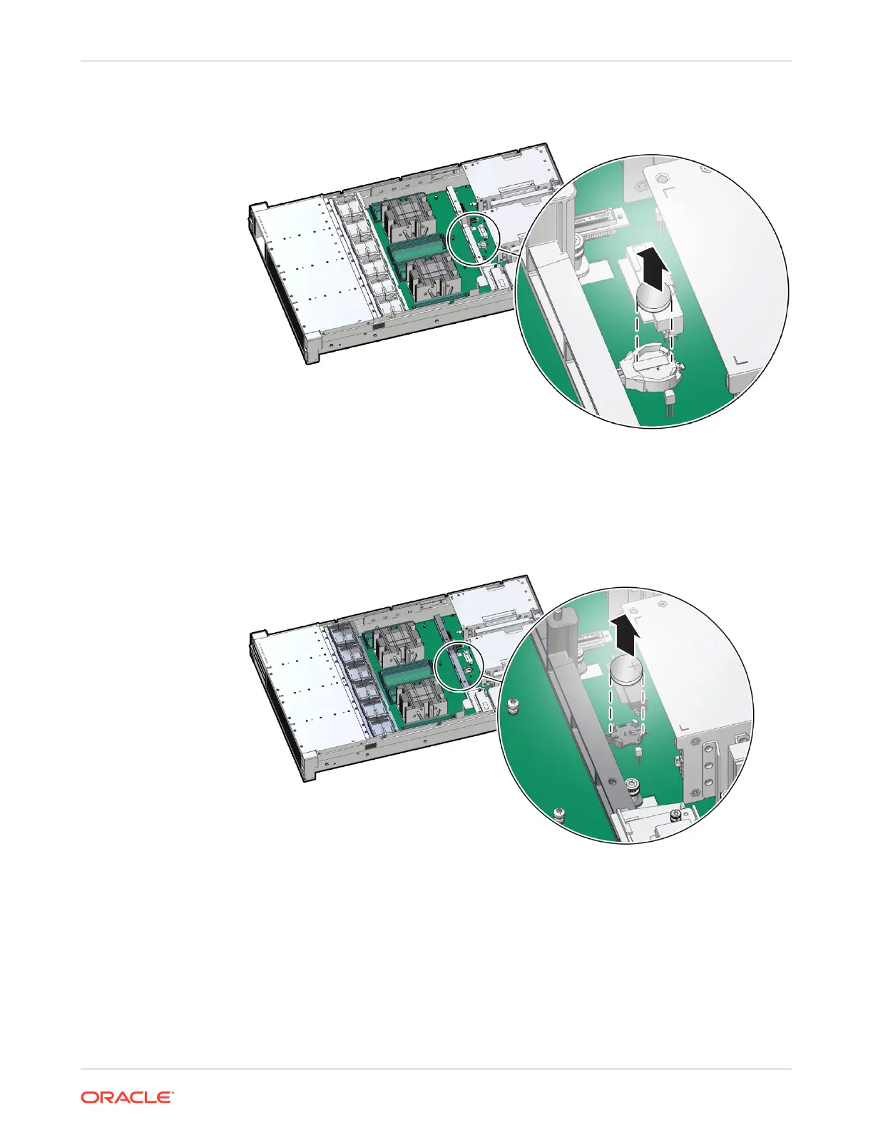 Push the coin battery towards the negative spring and then lift up the coin battery to