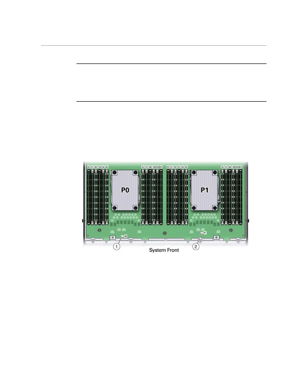 The processor fault LEDs are located next to the processor(s).