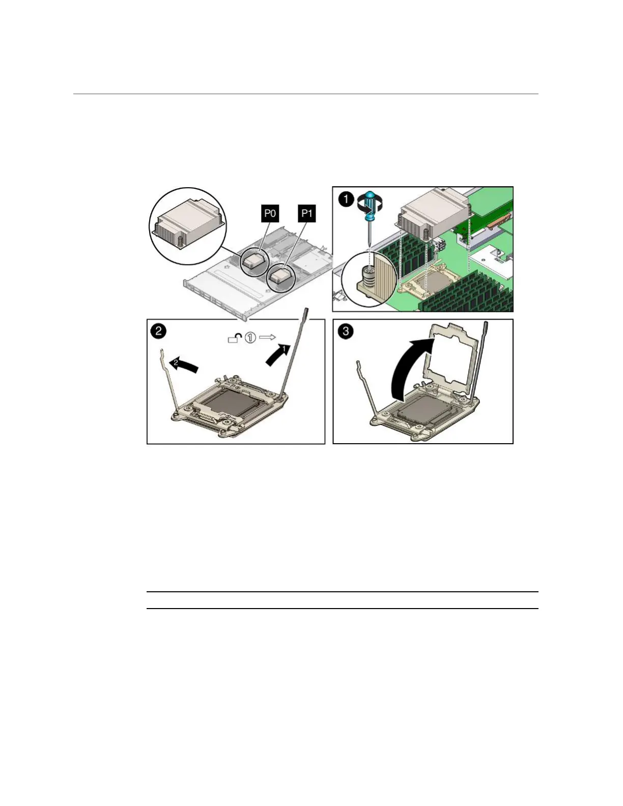 loosen the four Phillips captive screws in the heatsink for the failed processor