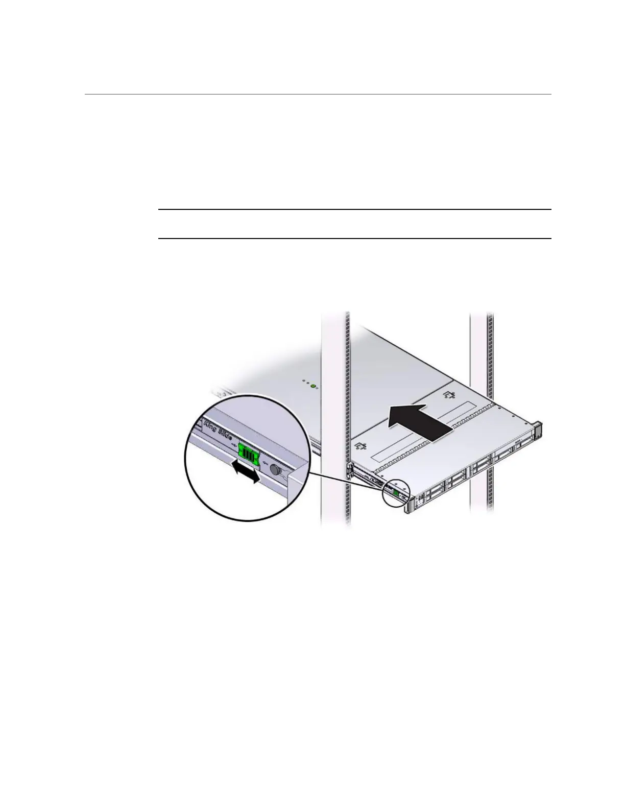Continue pushing the server into the rack until the slide-rail locks (on the