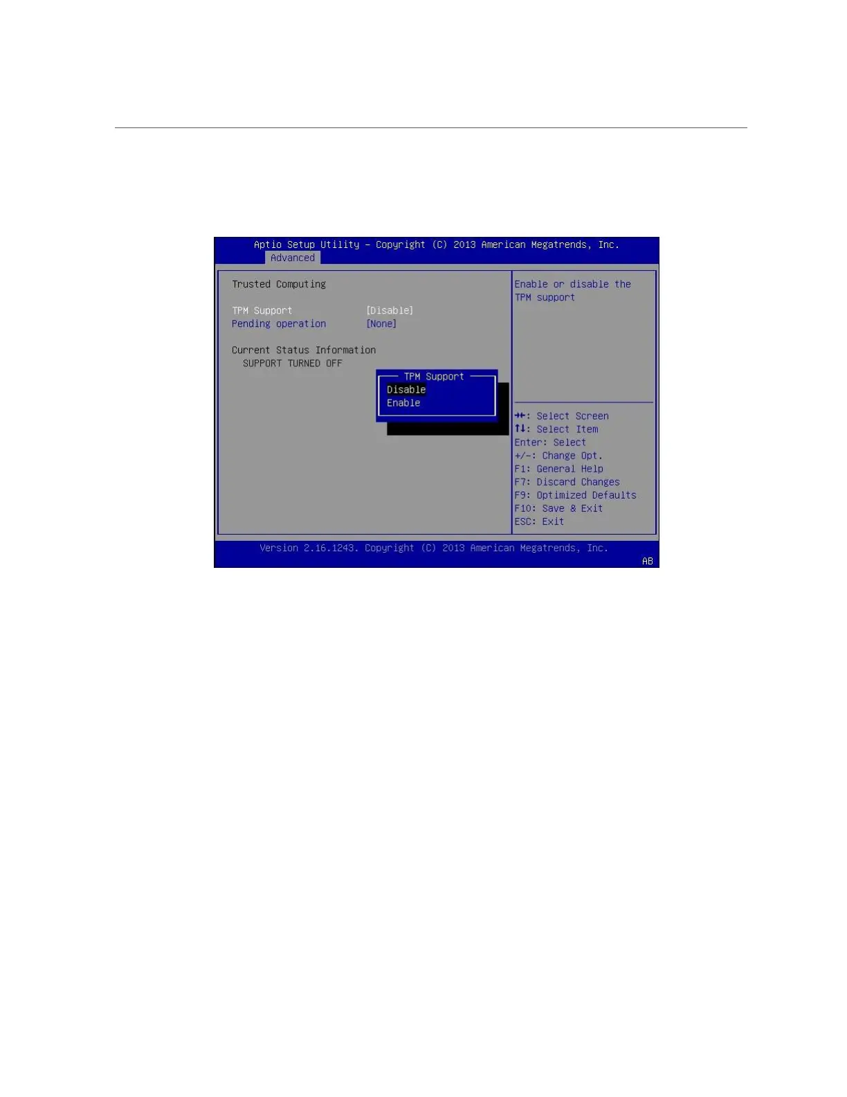 In the dialog box, set TPM Support to Enable, and then press Enter.