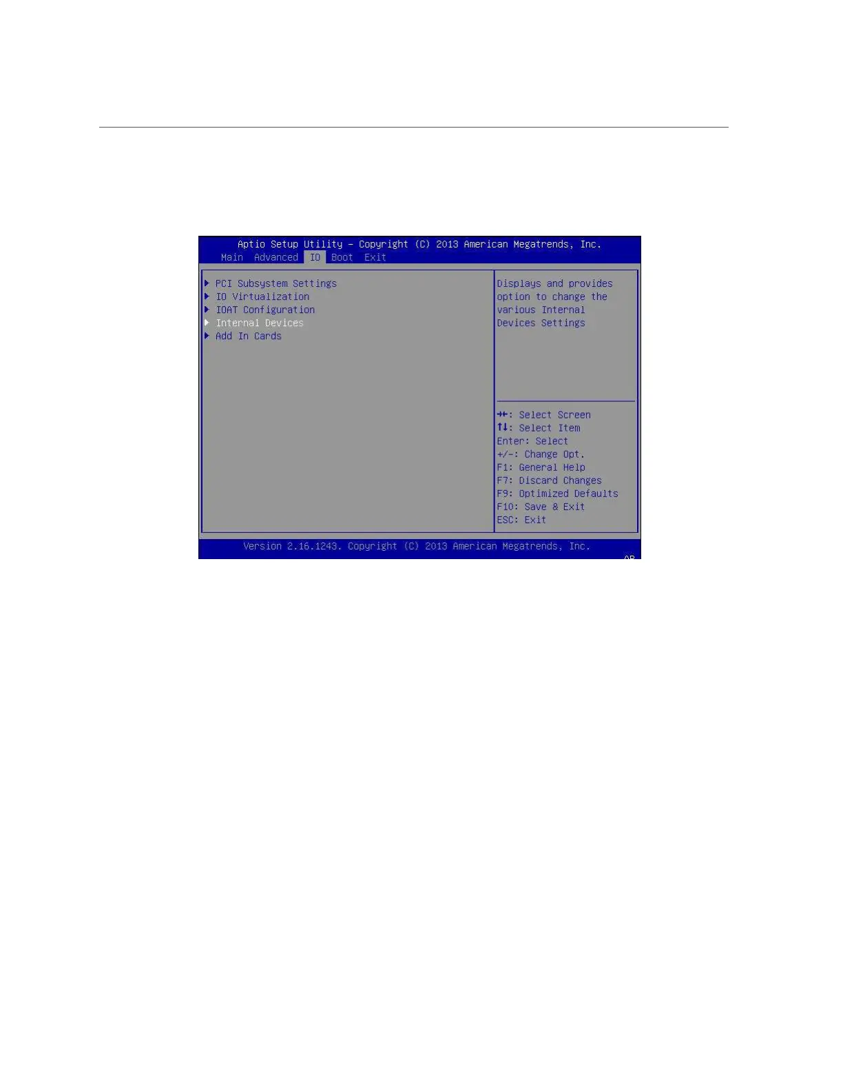 In the IO Menu, select either Internal Devices or Add In Cards and press Enter