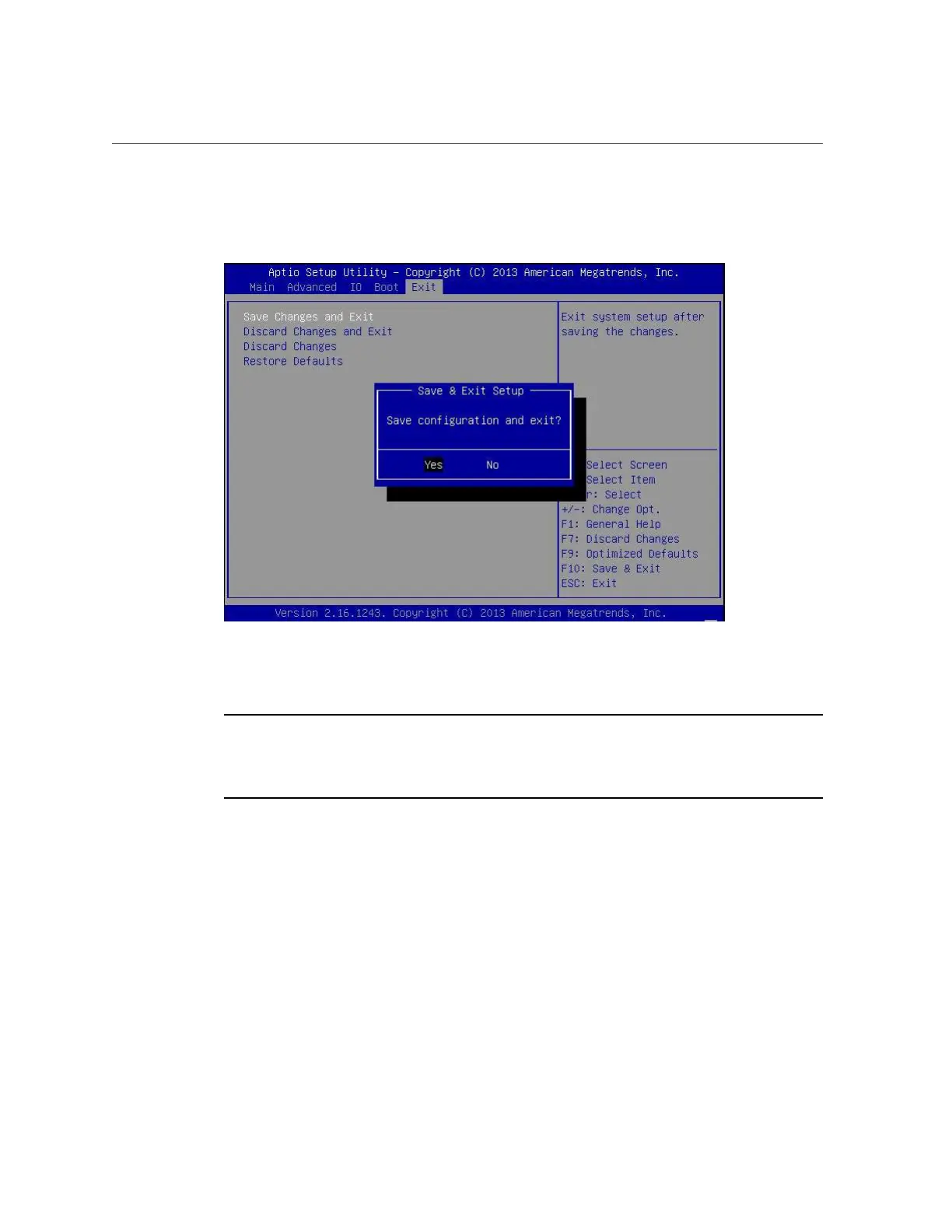 In the confirmation dialog box, select Yes to proceed and exit the BIOS Setup