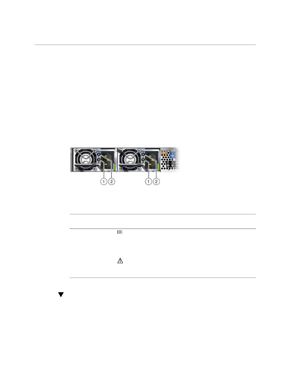 Each power supply contains two status indicators (LEDs) on the back panel. The following