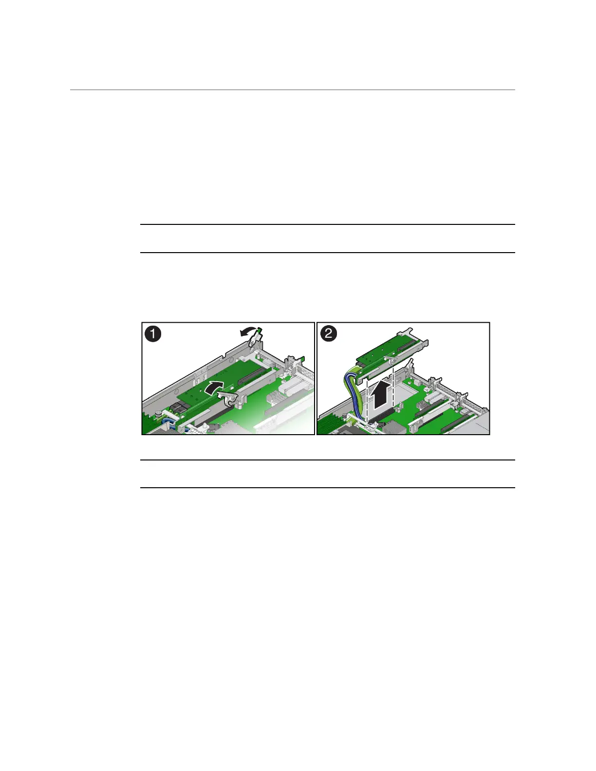 Grasp the riser with both hands and remove it from the server [2].