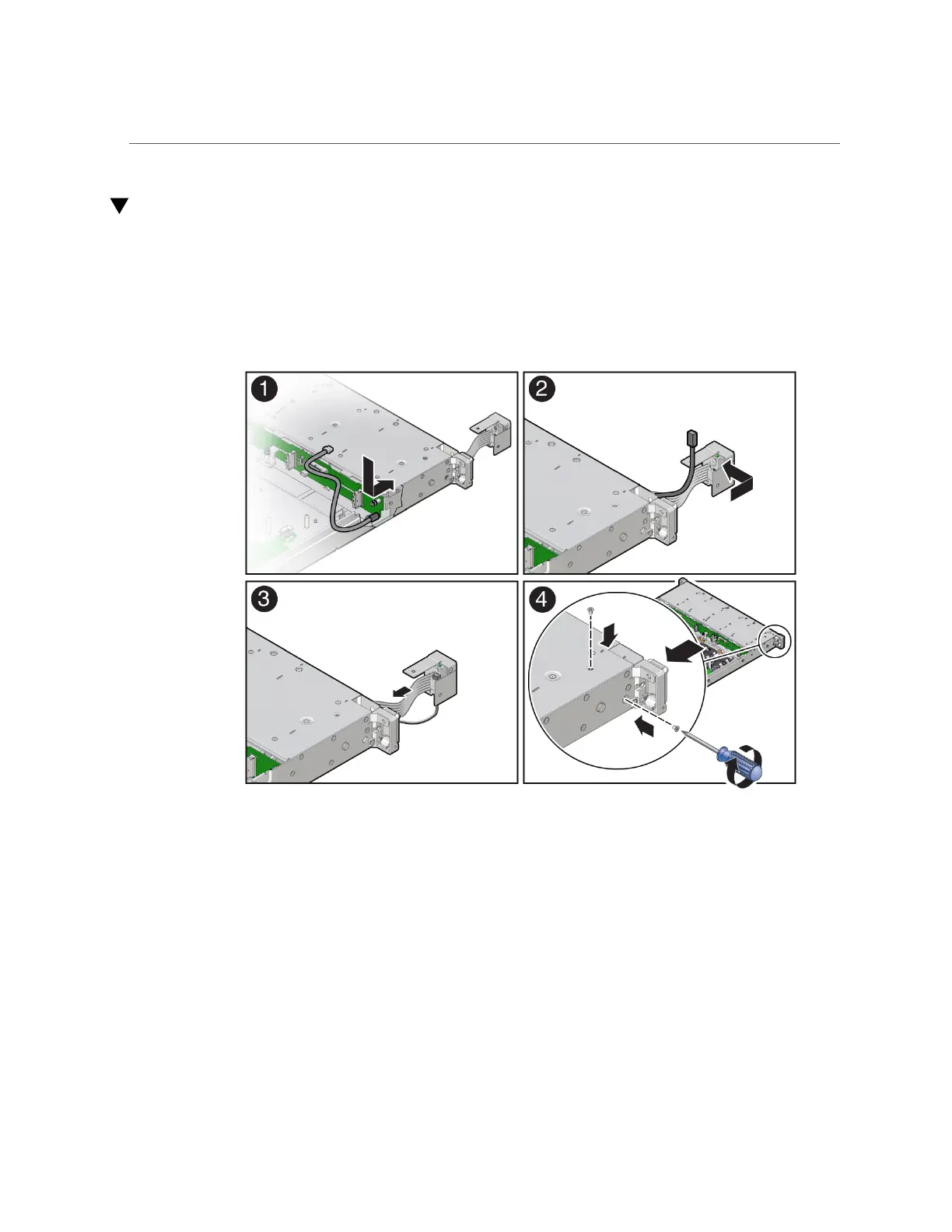 Install and tighten the two Phillips screws to secure the FIM assembly to the