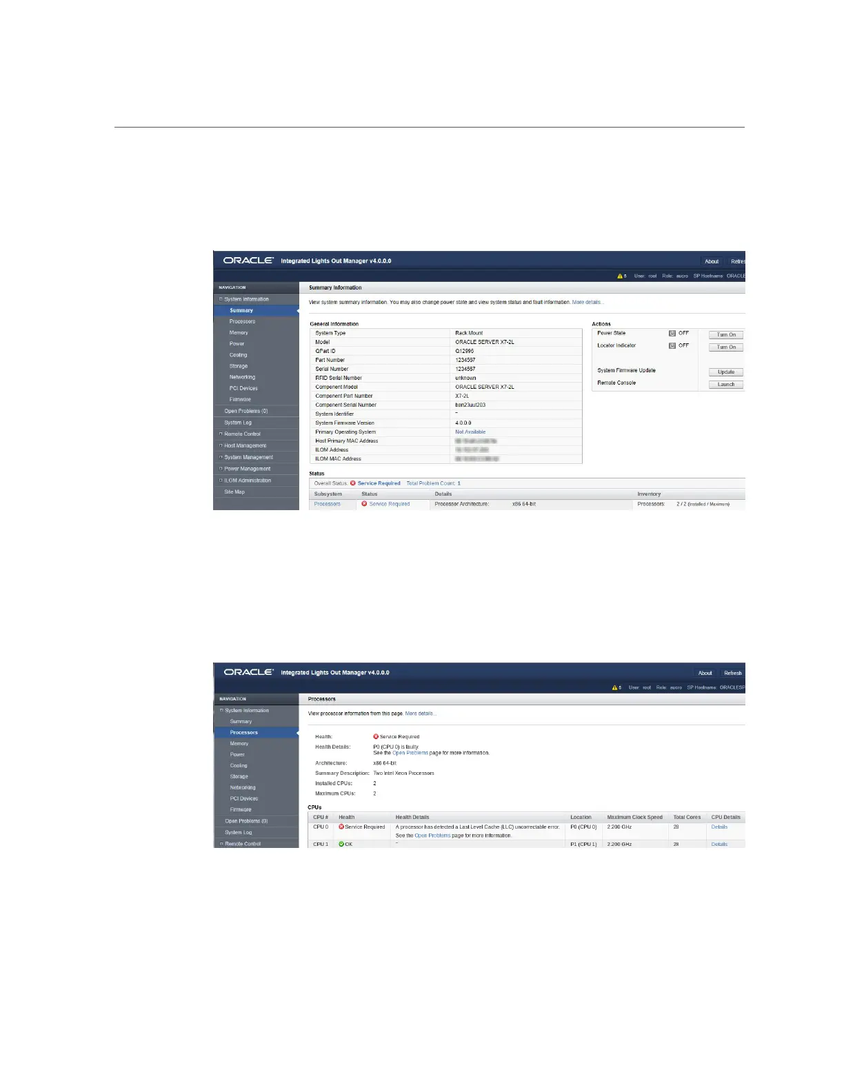 The Oracle ILOM Processors page appears.