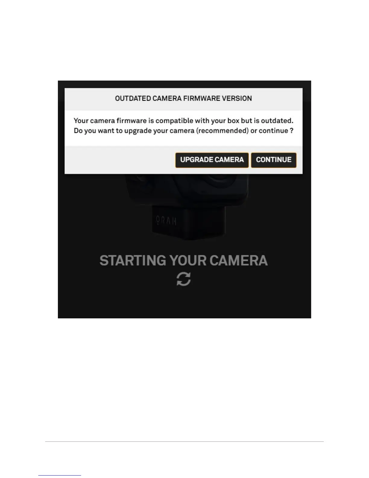 ● If the Camera Firmware version is older than the Stitching Box, the system will detect it