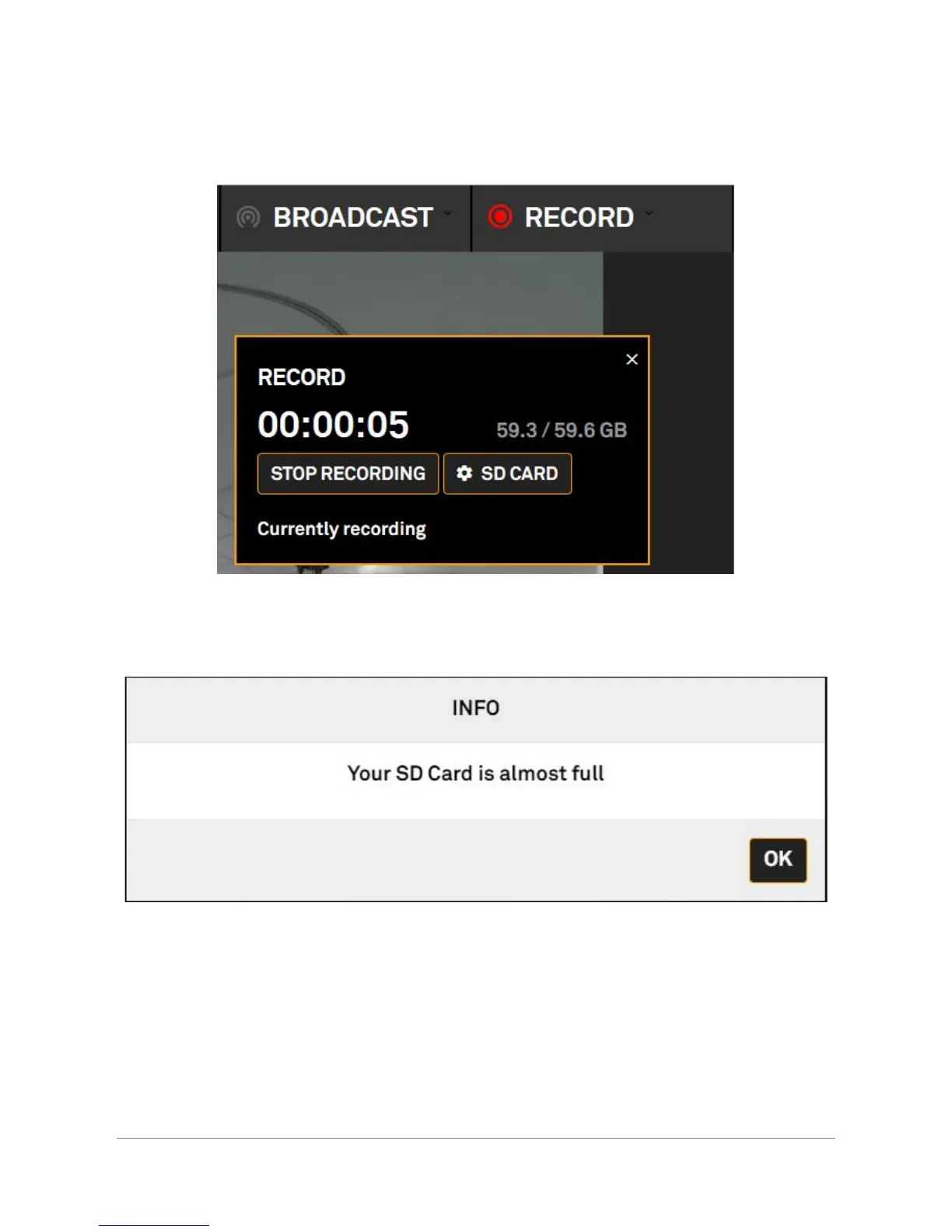 ● In the record state, it is possible to launch a record. Click on “start recording” to begin the