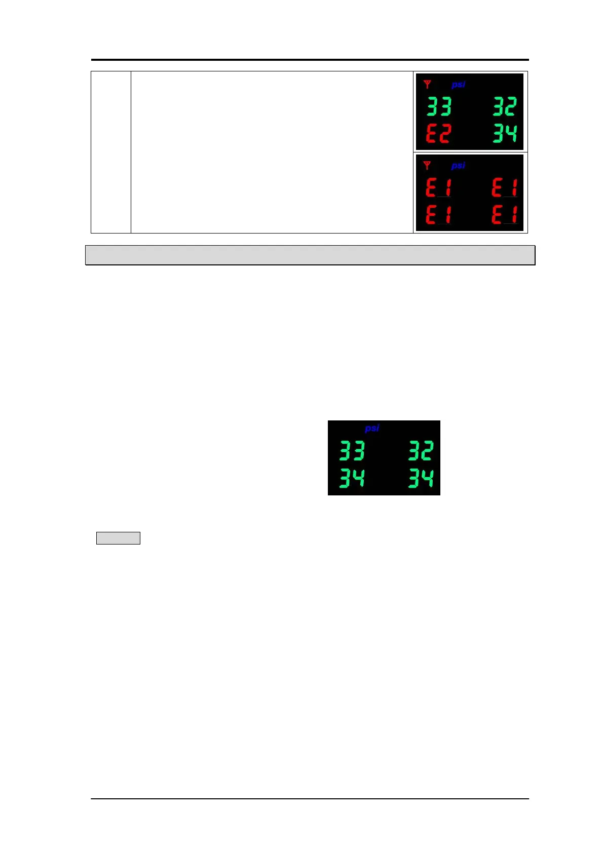 transmitter sensor not receivable, E2 indicates one wireless