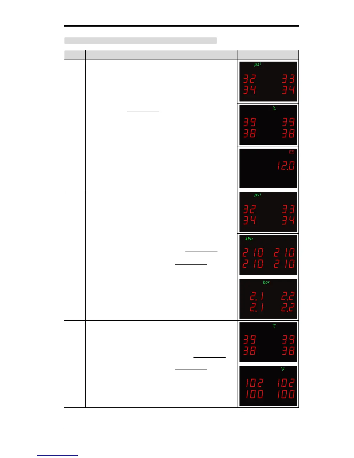 displaying the pressure unit, displaying the temperature unit,