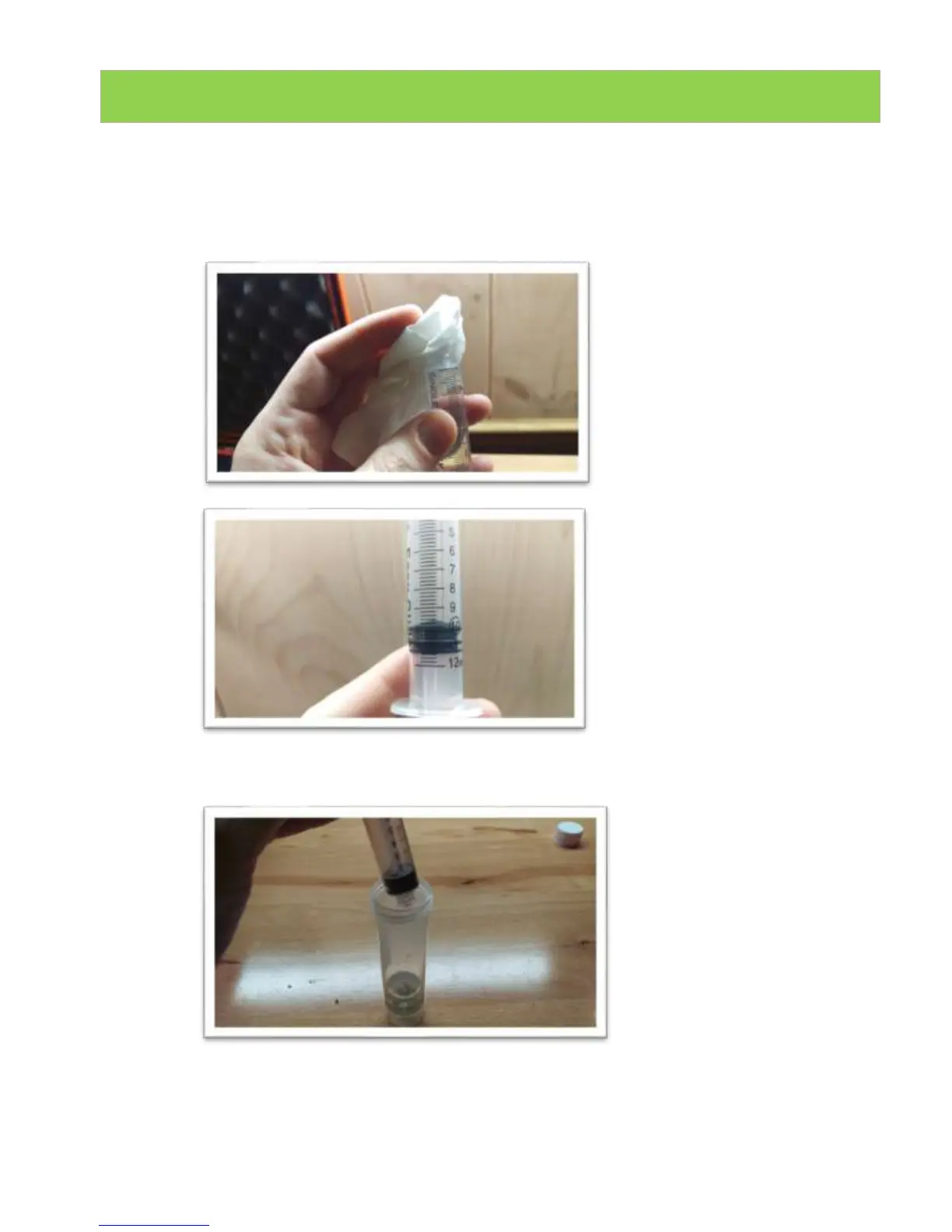 NOTE: It is important to ensure the syringe has the exact amount of solvent