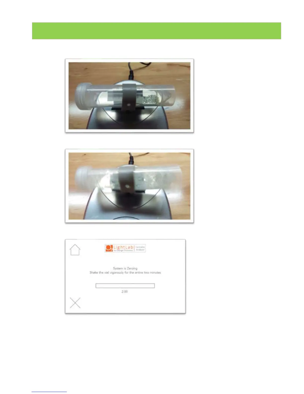 16. Place vial into shaker and strap in place. Press forward arrow on LightLab