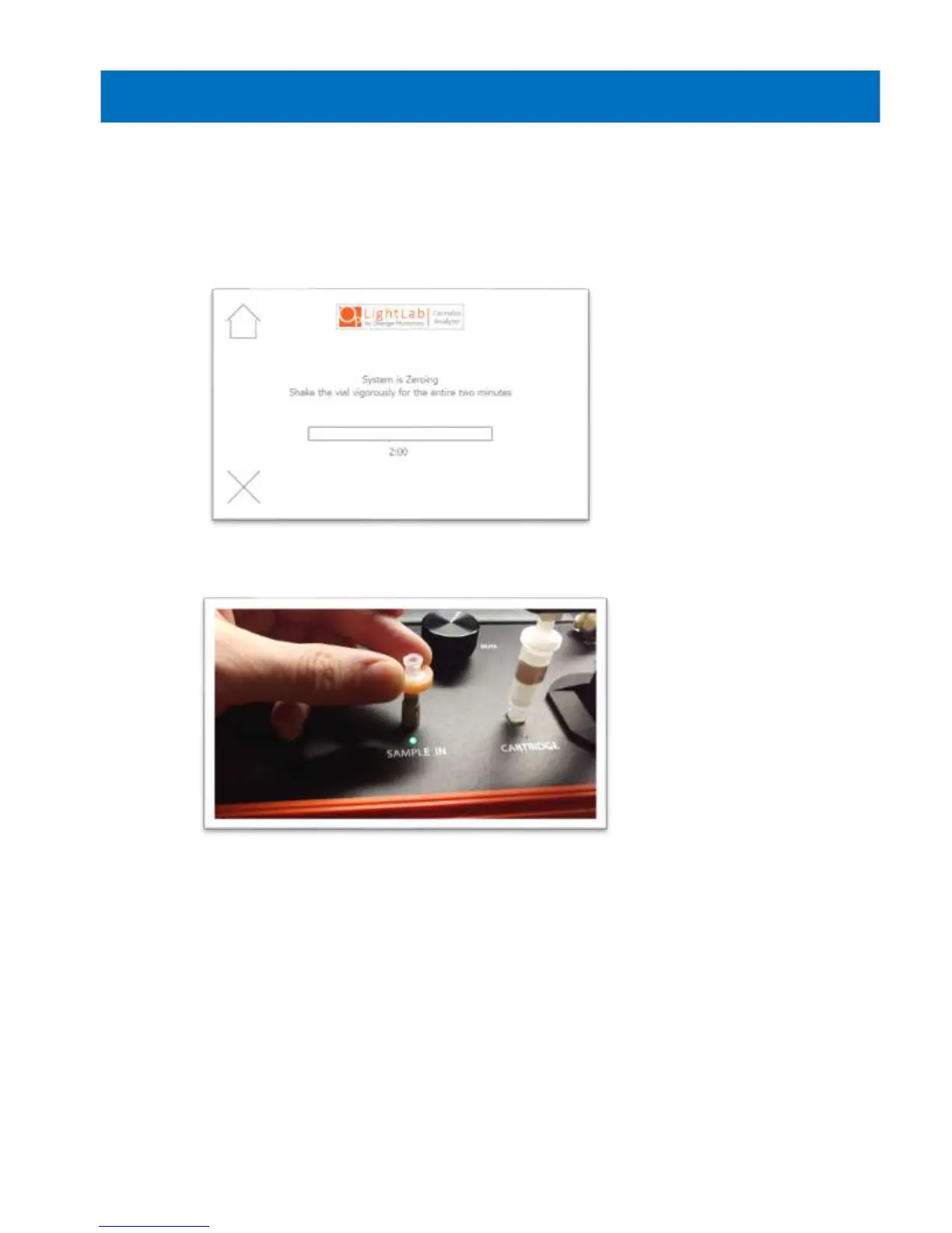 15. Press Start on LightLab screen. Zero process will begin, which takes two minutes