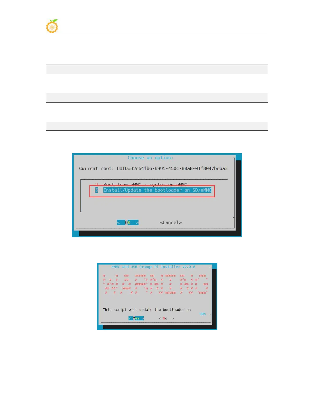 e. Then choose 5 Install/Update the bootloader on SD/eMMC