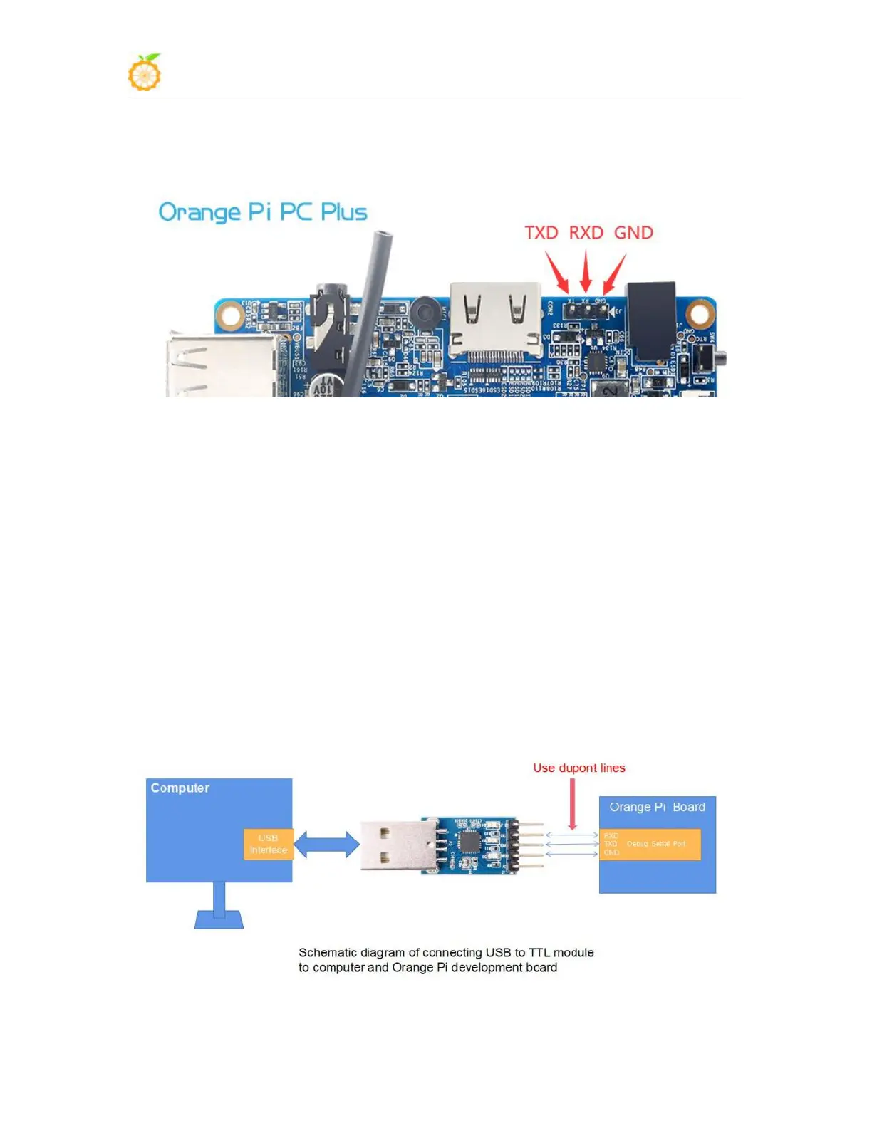 b. Connect the RXD of the USB to TTL module to the TXD of the development