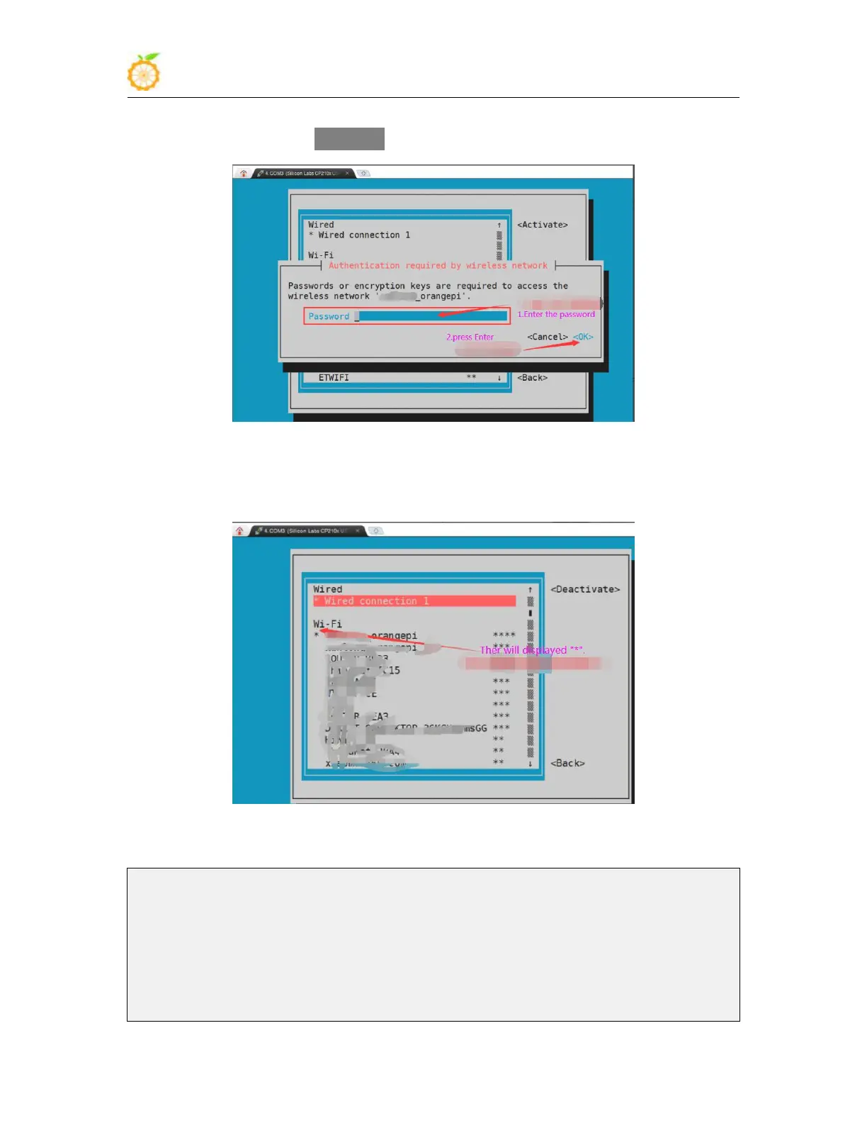 corresponding password in Password and press Enter to start connecting to WIFI