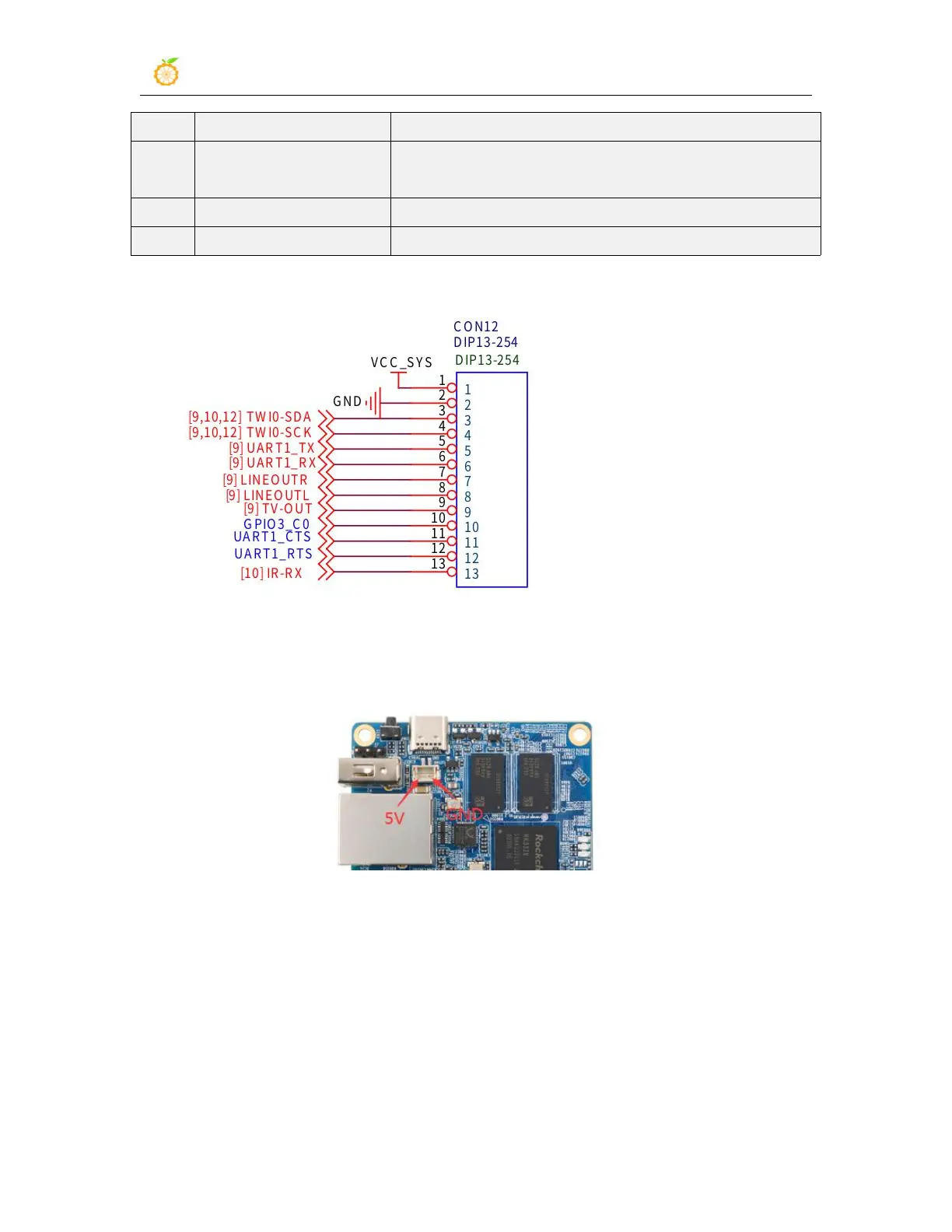 d.The schematic diagram of the 13pin header of Orange Pi R1 Plus is shown