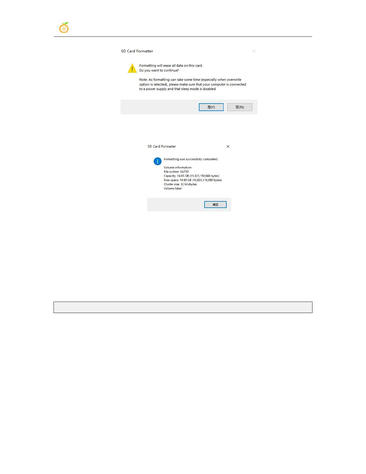 e. After formatting the TF card, the message shown below will pop up, click OK