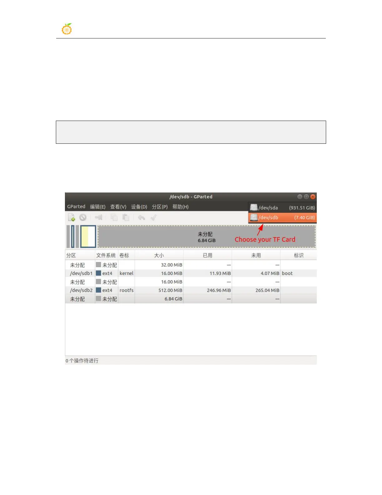 into the computer, and open gparted, select your TF card in the upper right corner, usually