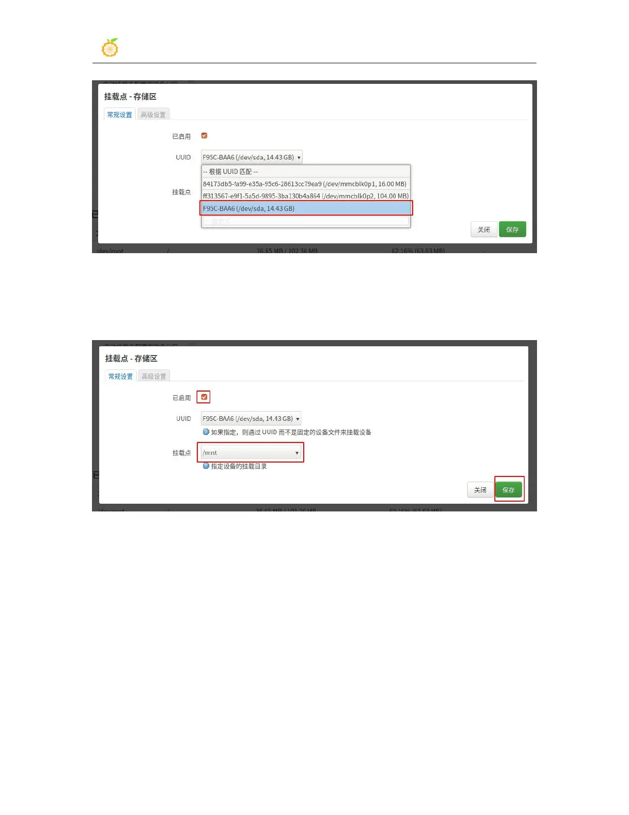 6) After setting, click "Save and Apply" to make the mount point effective
