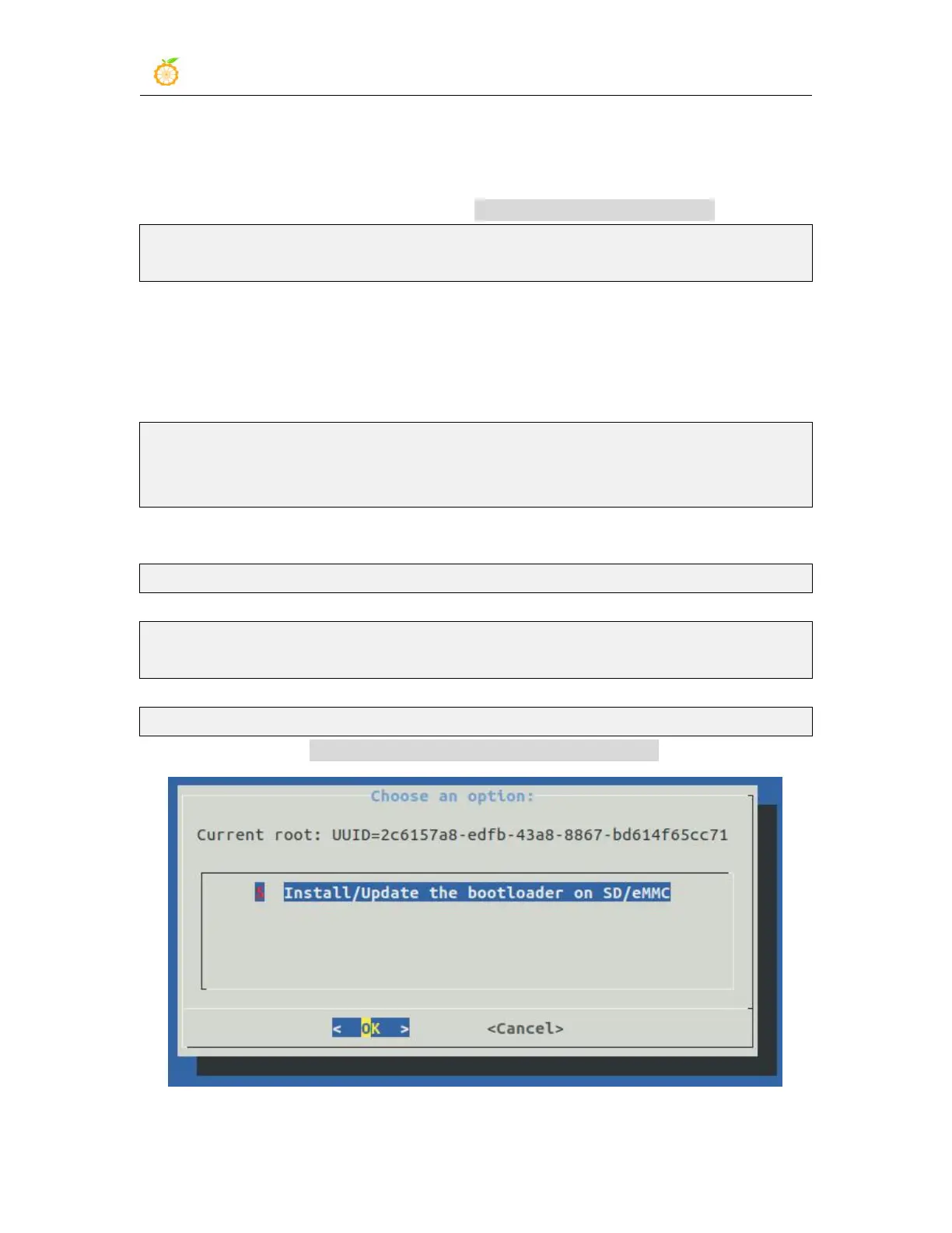 e. Then select 5 Install/Update the bootloader on SD/eMMC