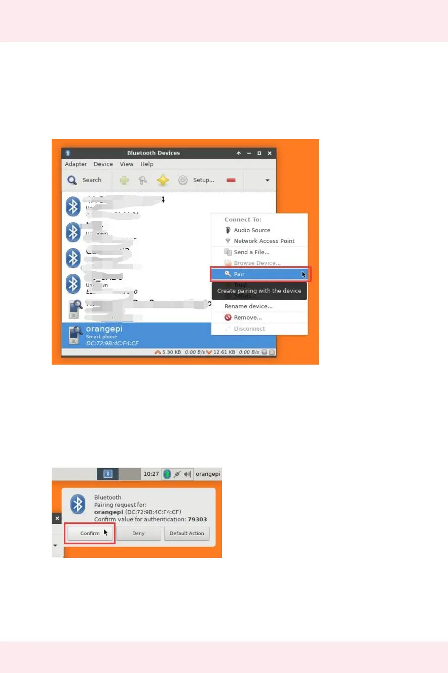 mouse button to pop up the operation interface of the Bluetooth device. Select Pair