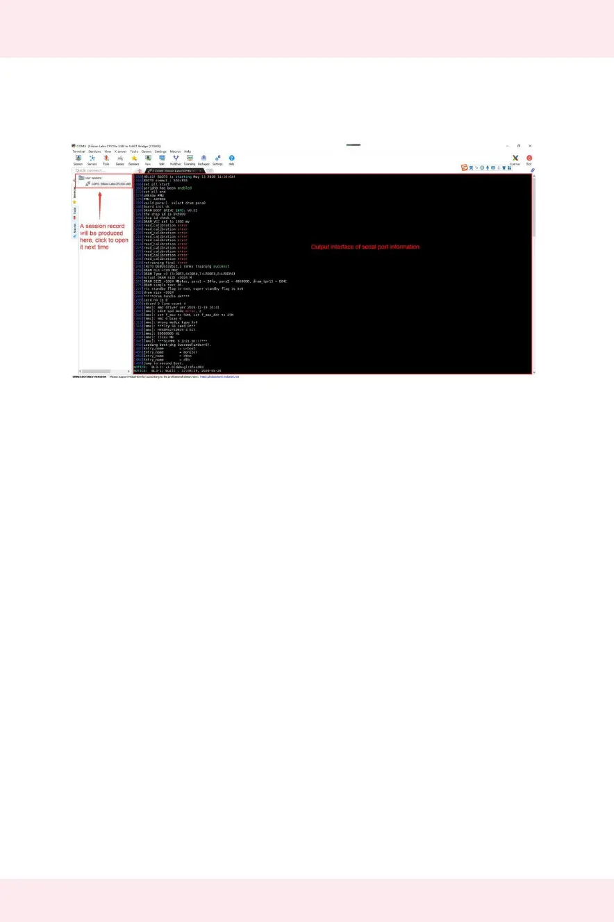 see the output information of the serial port after starting the development board
