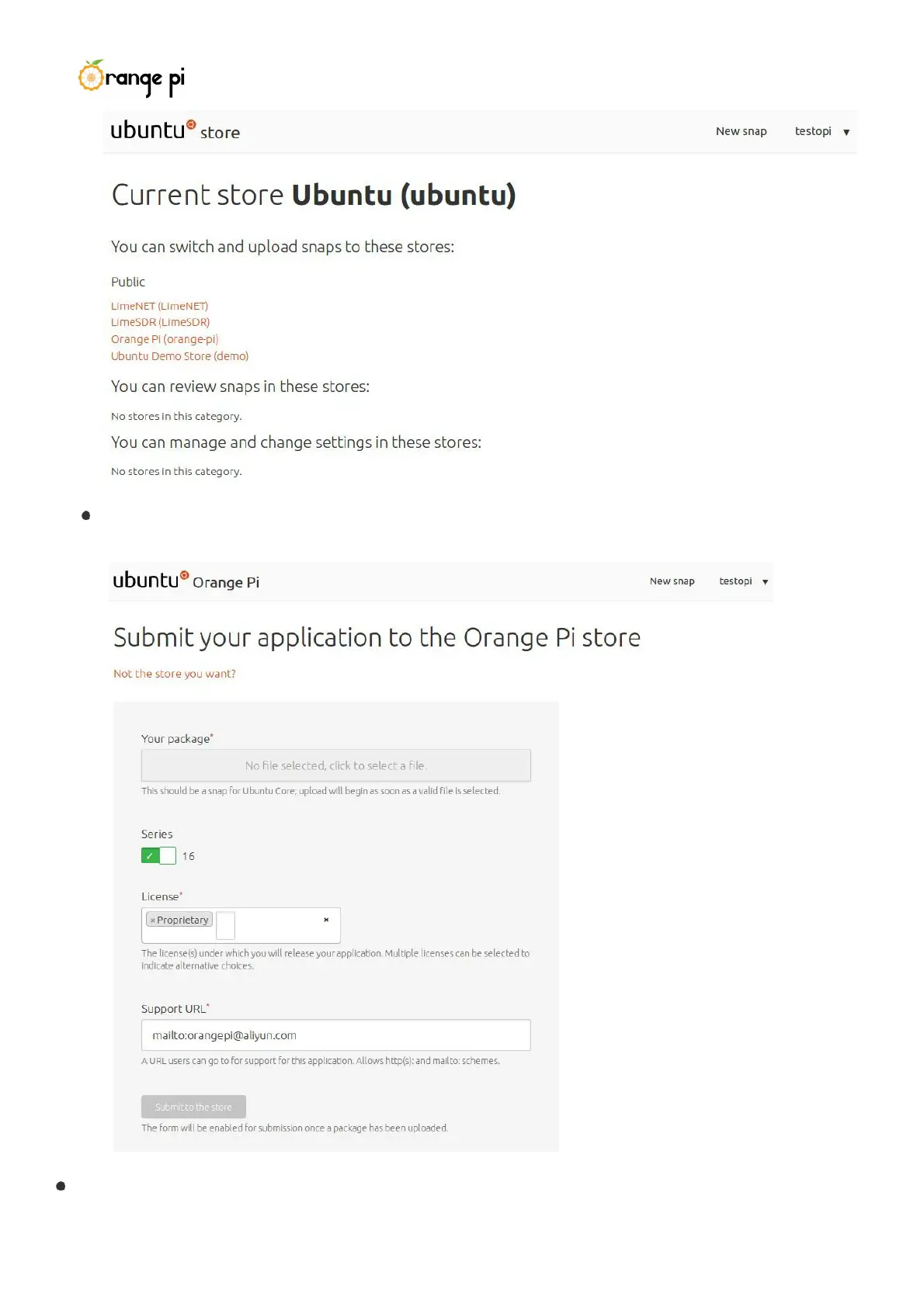 corner, you could upload Snaps into Orange Pi store with Submit to the store